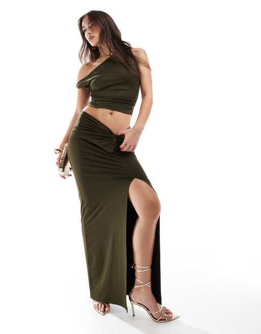 Conjunto caqui de falda larga y top con hombro descubierto de 4th & Reckless