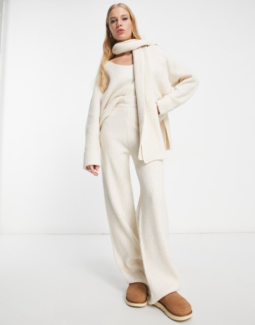 Conjunto color crema de jersey, bufanda y pantalones de punto de 4th & Reckless