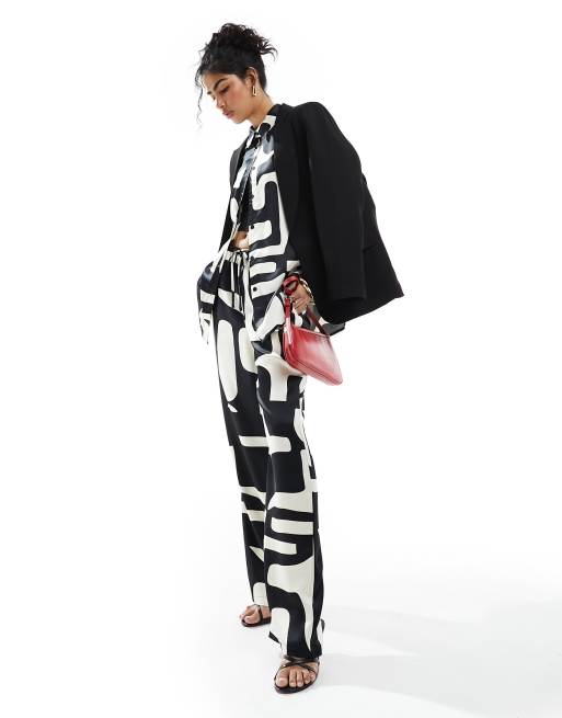 Conjunto de camisa y pantalones con estampado monocromático de satén de 4th & Reckless