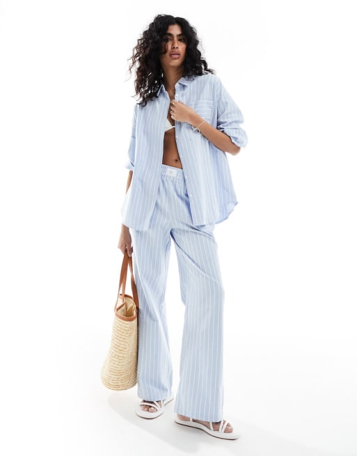 Conjunto playero a rayas azules y blancas anchas Delphi de 4th & Reckless