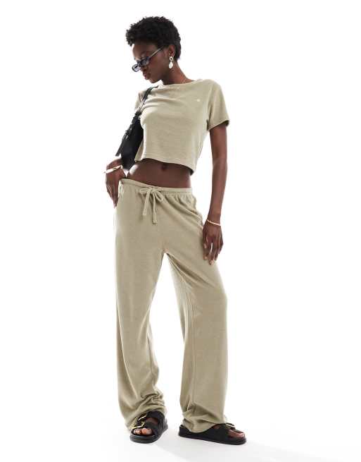 Conjunto verde pistacho de pantalones de pernera ancha con lazada en la cintura y camiseta con logo bordado de tejido rizado de 4th & Reckless