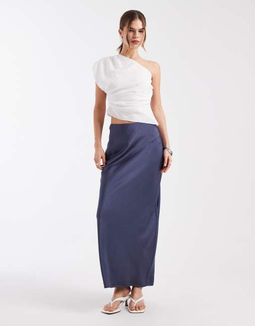 Falda larga azul de corte recto de satén de 4th & Reckless