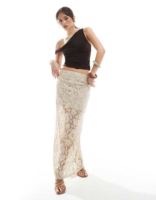 Falda larga beis de encaje floral de 4th & Reckless