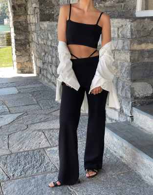 Pantalones de campana negros con detalle de tiras de punto fino 4th & Reckless x Mimi A.R