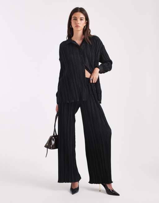 Pantalones negros plisados de pernera ancha con cintura elástica de 4th & Reckless (parte de un conjunto)