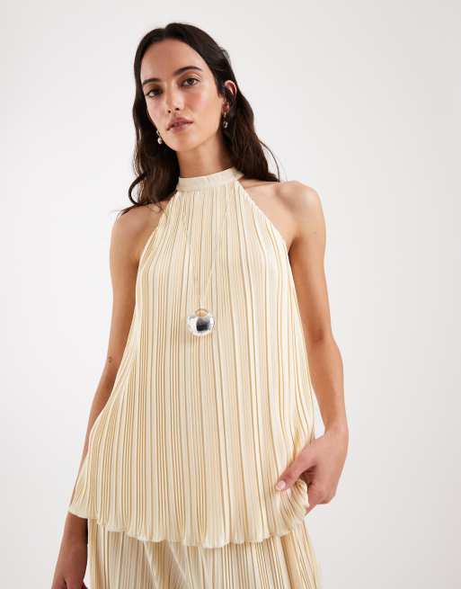 Top amarillo limón plisado sin mangas con cuello halter de 4th & Reckless (parte de un conjunto)