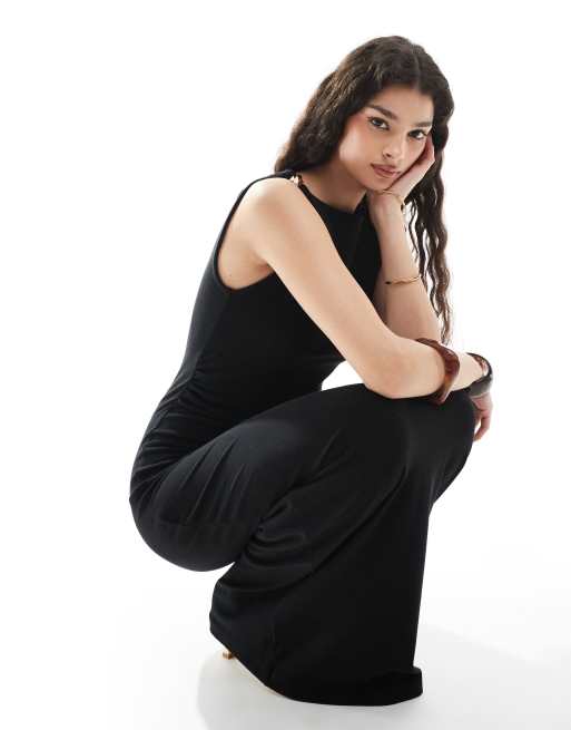 Vestido largo negro ceñido con detalle drapeado en el hombro, diseño de doble capa y detalle de herraje dorado de 4th & Reckless