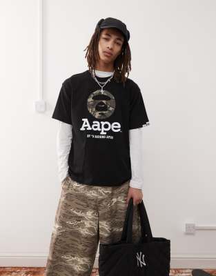 Camiseta negra con logo de camuflaje de AAPE BY A BATHING APE®