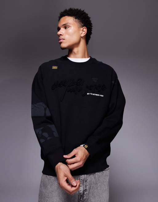 Sudadera negra extragrande con bordado en el pecho de Aape by A Bathing Ape