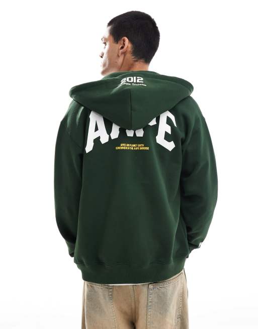 Sudadera verde oscuro básica con capucha, cremallera y logo de AAPE BY A BATHING APE®