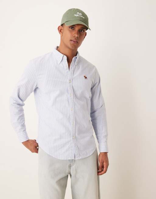 Camisa Oxford azul a rayas con logo Icon de Abercrombie & Fitch