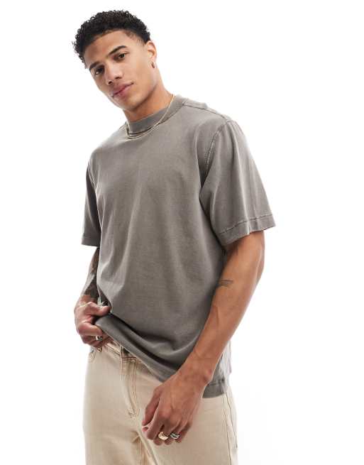 Camiseta marrón con lavado ácido efecto envejecido y desgastado de Abercrombie & Fitch