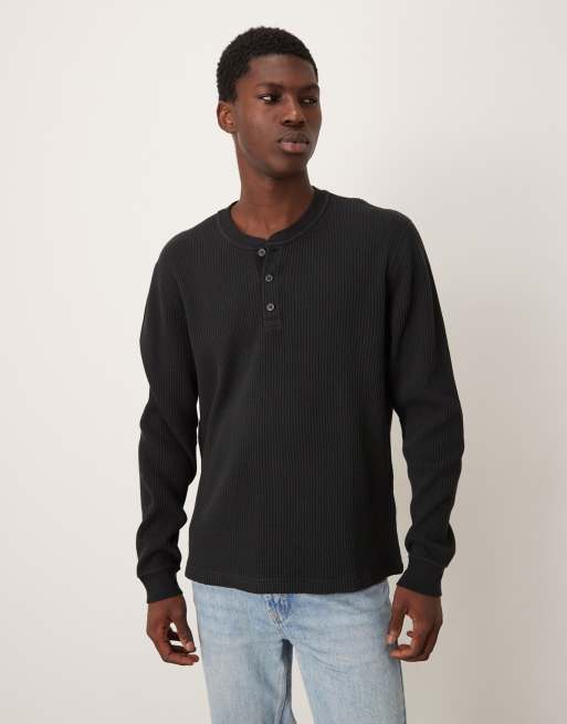 Camiseta negra de manga larga con cuello panadero de tejido gofrado de Abercrombie & Fitch