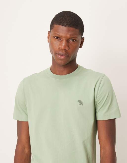 Camiseta verde con cuello redondo y logo de icono de alce en relieve de Abercrombie & Fitch