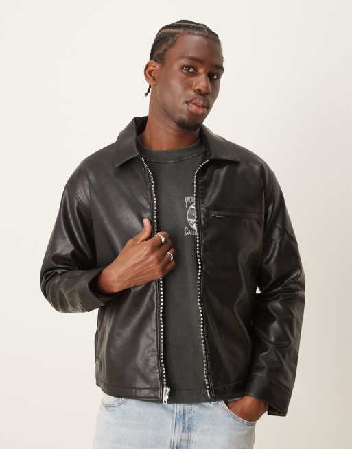 Chaqueta biker corta negra con cremallera delantera de cuero sintético de Abercrombie & Fitch