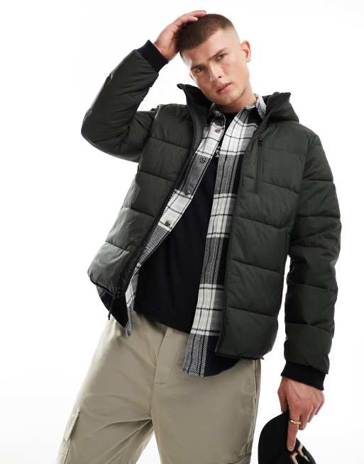 Chaqueta de plumas verde oliva ligera con capucha de Abercrombie & Fitch