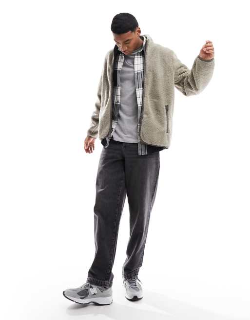 Chaqueta marrón con cremallera doble de borreguito de Abercrombie & Fitch