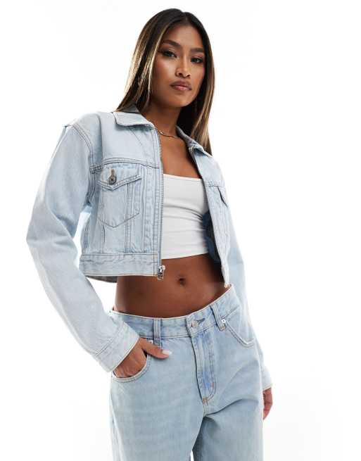 Chaqueta vaquera corta azul claro con cremallera en la parte delantera de Abercrombie & Fitch