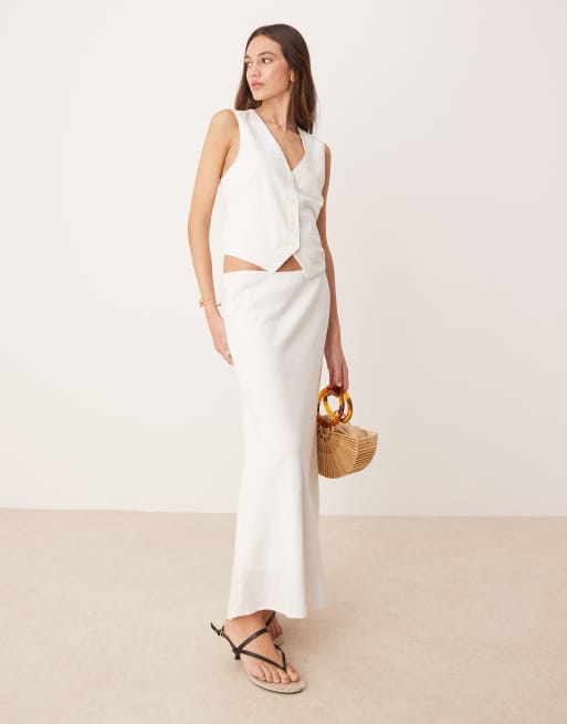 Falda larga blanca de corte al bies de mezcla de lino de Abercrombie & Fitch