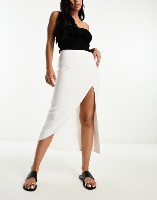 Falda midi blanca con bajo asimétrico de Abercrombie & Fitch