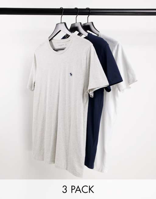 Pack de 3 camisetas de color blanco, azul marino y gris jaspeado con logo de Abercrombie & Fitch