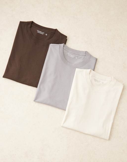 Pack de 3 camisetas clásicas de color gris, marrón y beis refinadas de Abercrombie & Fitch