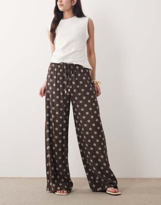 Pantalones marrones sin cierres con estampado floral de tejido rugoso de Abercrombie & Fitch