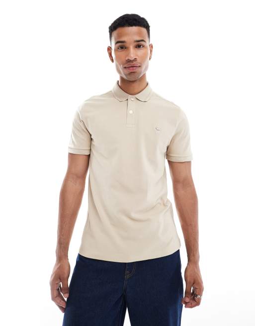 Polo beis con ribetes y logo en relieve de piqué Icon de Abercrombie & Fitch