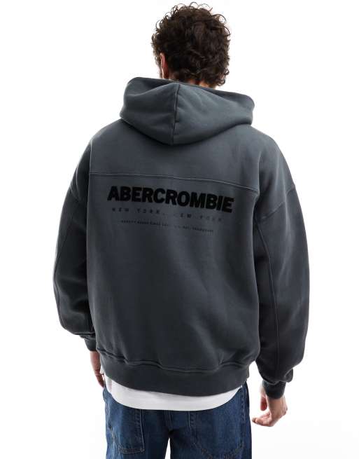 Sudadera gris carbón extragrande con capucha y estampado de logo flocado en la espalda de Abercrombie & Fitch