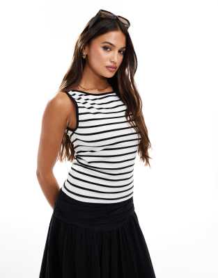 Top blanco a rayas negras sin mangas con cuello barco de Abercrombie & Fitch