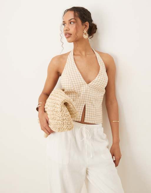 Top de sastre beis con cuello halter de Abercrombie & Fitch