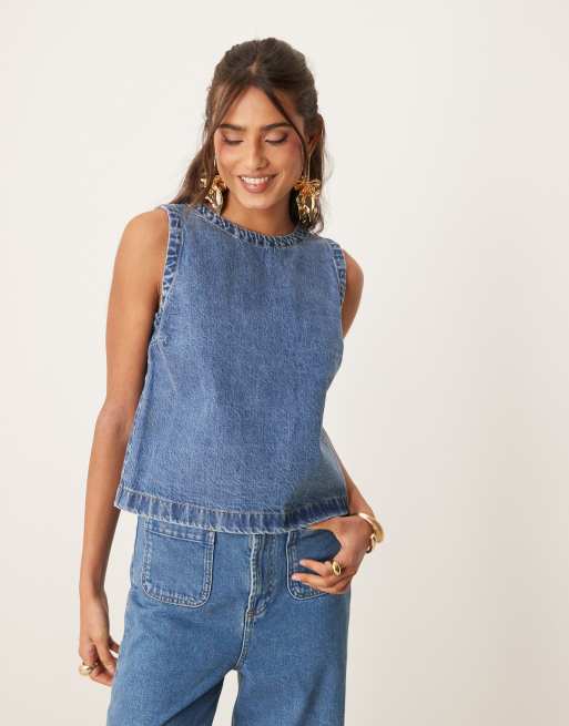 Top elegante con lavado azul y detalle de botones de Abercrombie & Fitch