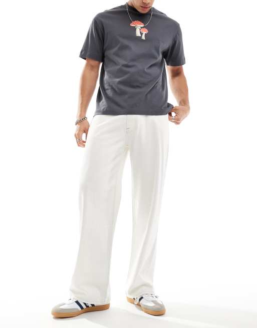 Vaqueros blancos holgados con lavado envejecido de tejido ligero de Abercrombie & Fitch