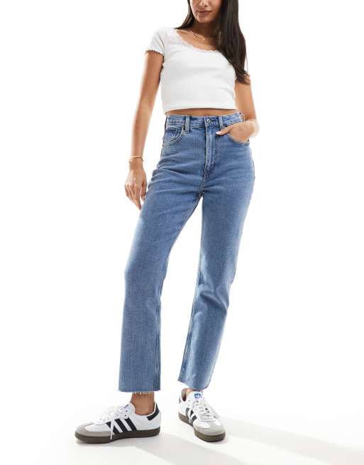 Vaqueros capri azul medio de corte recto y talle muy alto Love de Abercrombie & Fitch Curve