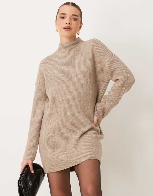 Vestido beis con cuello vuelto de punto de Abercrombie & Fitch
