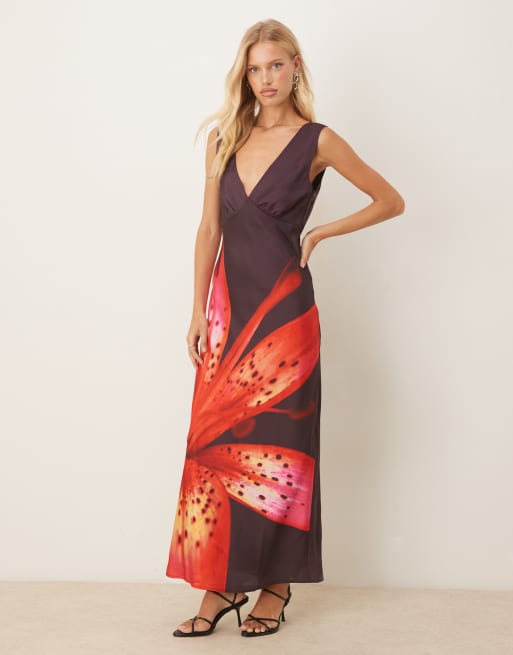 Vestido para eventos especiales largo rojo con estampado de flor y espalda al aire de Abercrombie & Fitch