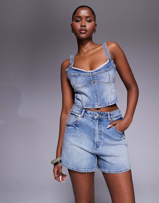 Pantalones cortos vaqueros azul medio de talle alto de Abrand