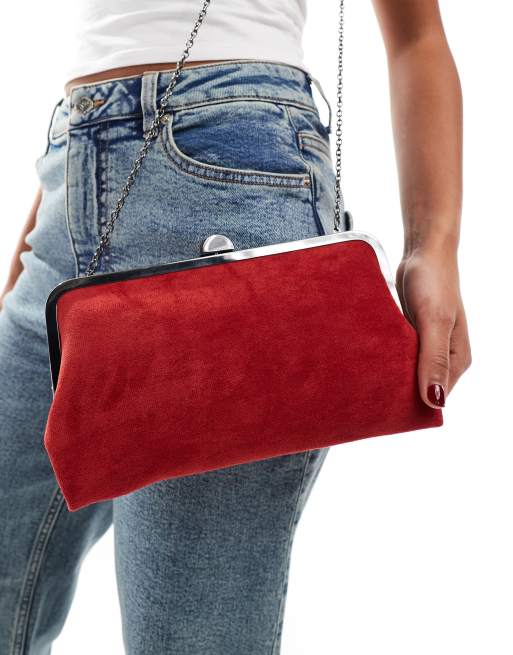 Bolso clutch rojo de antelina con bastidor y cierre de presión de Accessorize