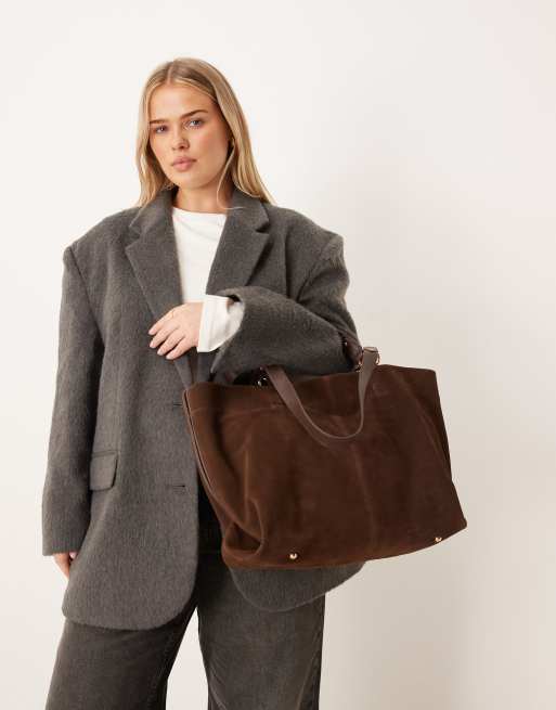 Bolso tote marrón chocolate con varias asas de ante de Accessorize
