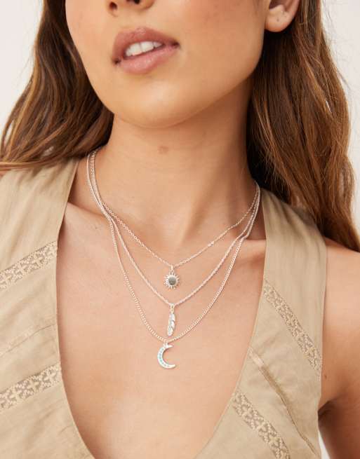 Collar plateado de varias hileras con diseño celestial de Accessorize
