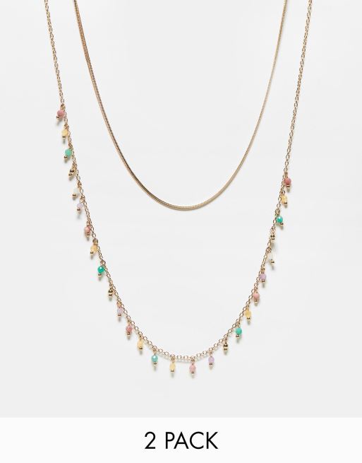 Pack de 2 collares de cadena dorada con cuentas de Accessorize