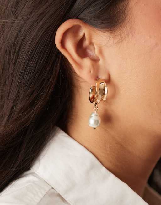 Pendientes de aro dorados gruesos con diseño colgante de perla de Accessorize