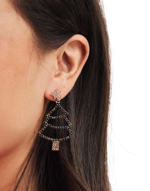 Pendientes dorados en forma de árbol de Navidad de Accessorize