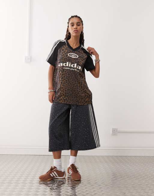 Camisa de estilo fútbol con estampado de leopardo de adidas Originals