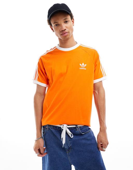 Camiseta naranja con tres rayas de adidas Originals