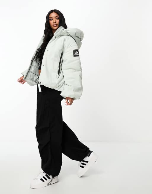 Chaqueta de plumas plateada extragrande de adidas Originals