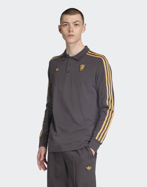Polo negro utilitario de manga larga con diseño del Manchester United Terrace Icons de adidas Originals