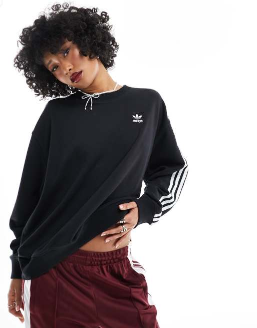 Sudadera negra extragrande con detalle de 3 rayas de adidas Originals