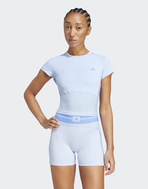 Camiseta azul con diseño encogido de canalé Hyperglam de adidas Performance