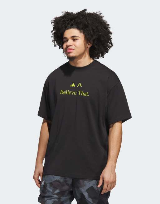 Camiseta negra y verde lima envejecido Anthony Edwards Believe That de adidas Performance